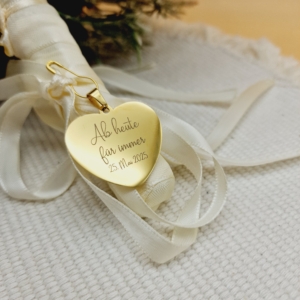 Personalisiere das kleine Herz mit einem Buchstaben oder einem Namen und – auf Wunsch – mit einem Datum oder kurzen Text auf der Rückseite. So wird es zu einem ganz besonderen Andenken an Menschen und Momente, die dir am Herzen liegen.
