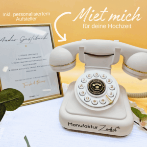Mit dem stilvollen Audio-Gästebuch im Vintage-Design werden Erinnerungen lebendig – eure Gäste hinterlassen persönliche Sprachnachrichten, die ihr euch immer wieder anhören könnt.