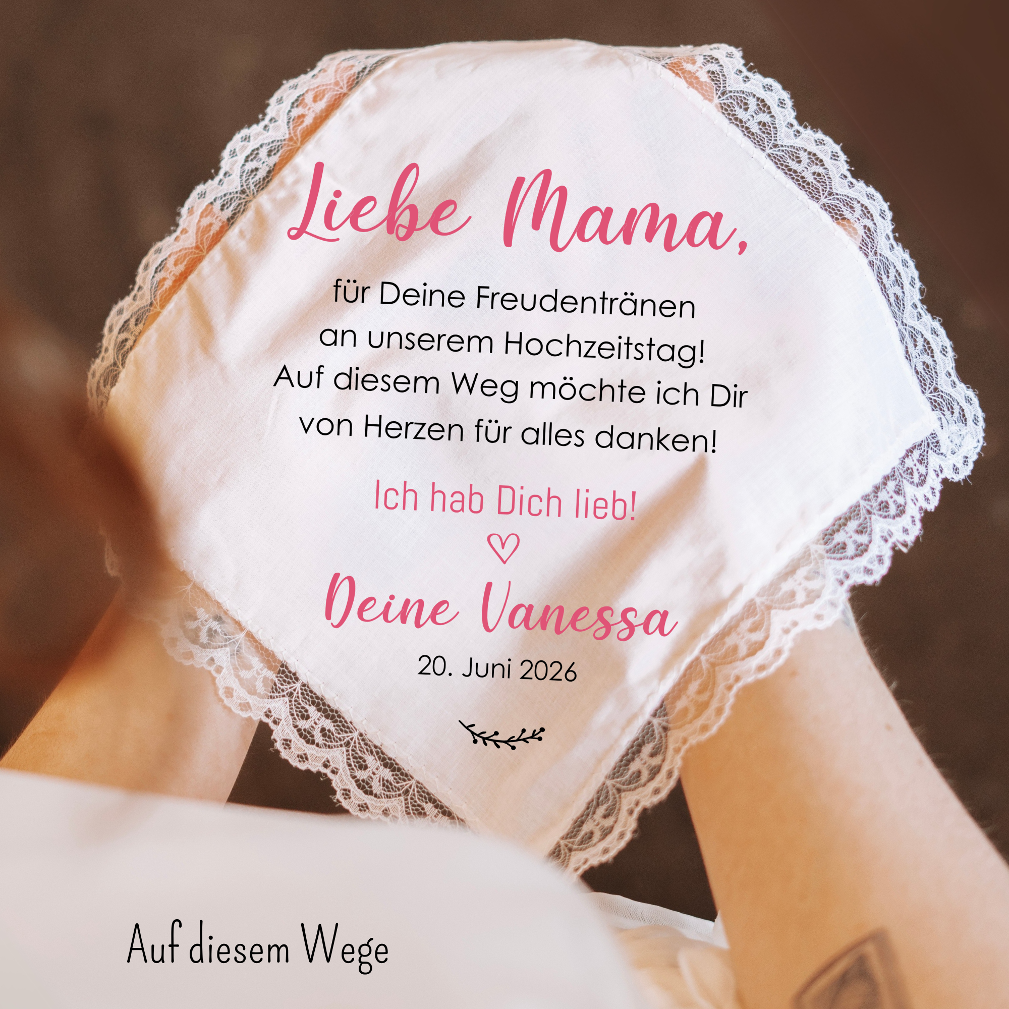 Taschentuch mit Spitze unten: Maße ca. 20x20cm, ausgebreitet ist es ca 43x43cm – Wird im gefalteten Zustand bedruckt