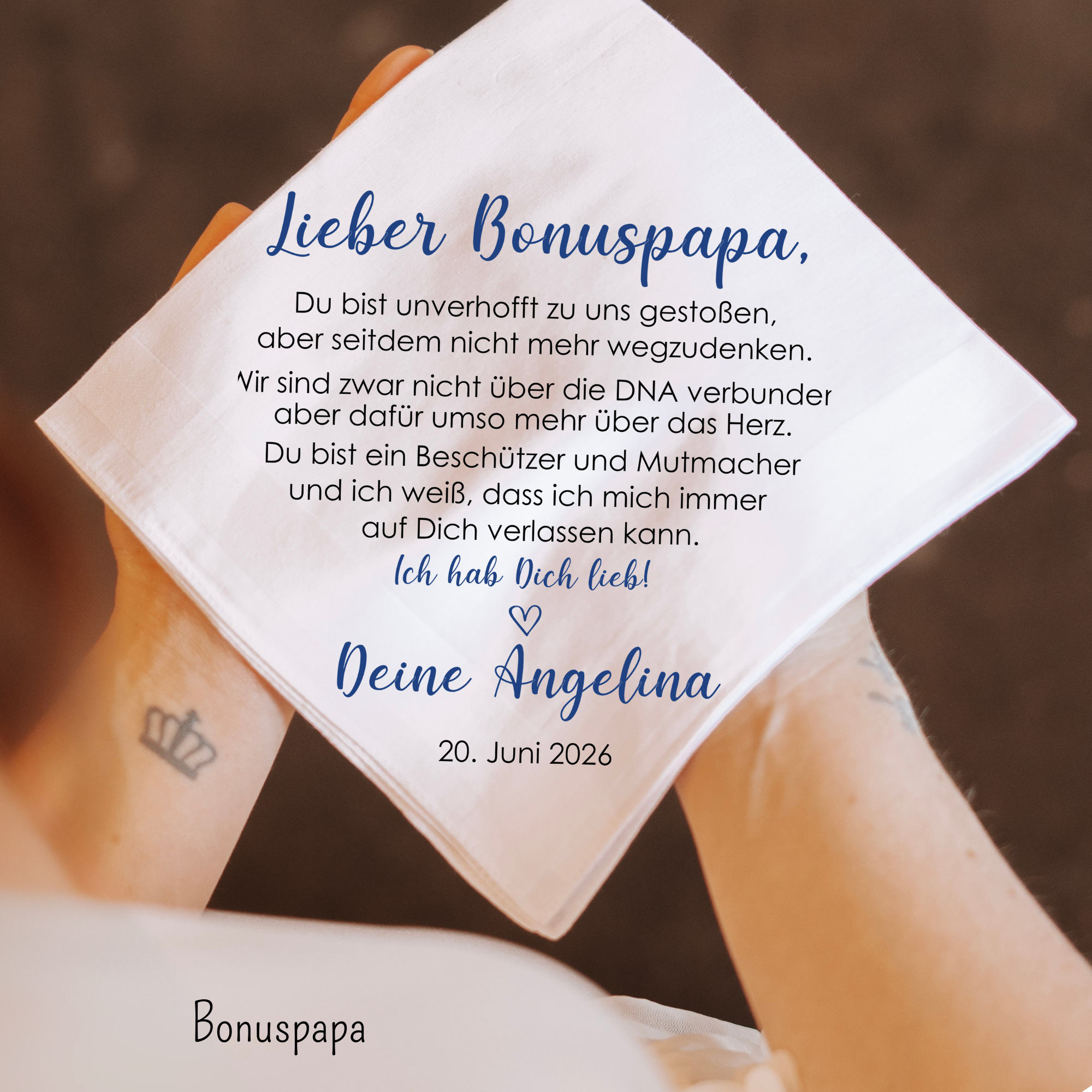 Bei Auswahl eines Taschentuchs mit Foto sende dein Wunschbild bitte nach der Bestellung unter Angabe deiner Bestellnummer an romina@manufakturzauber.de.