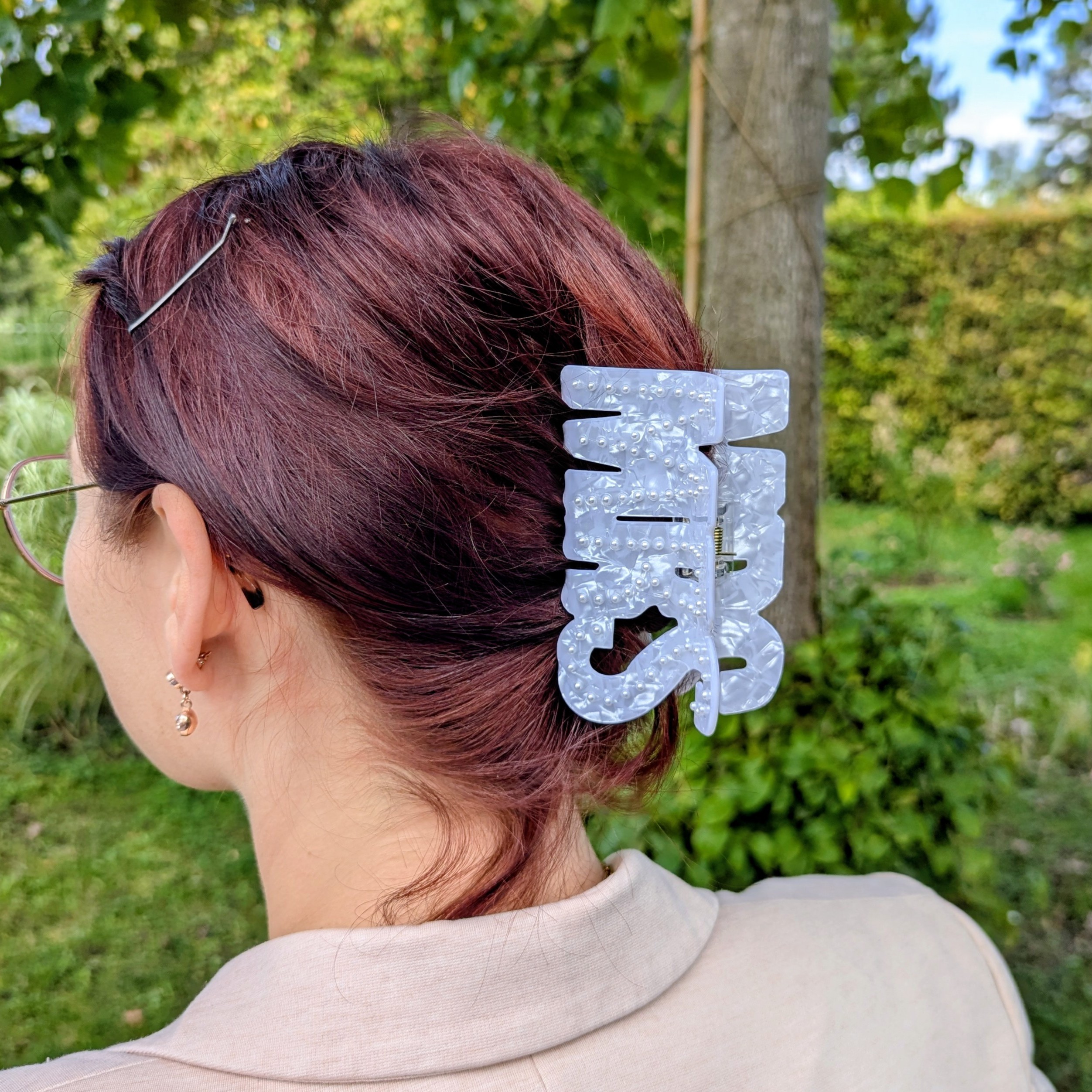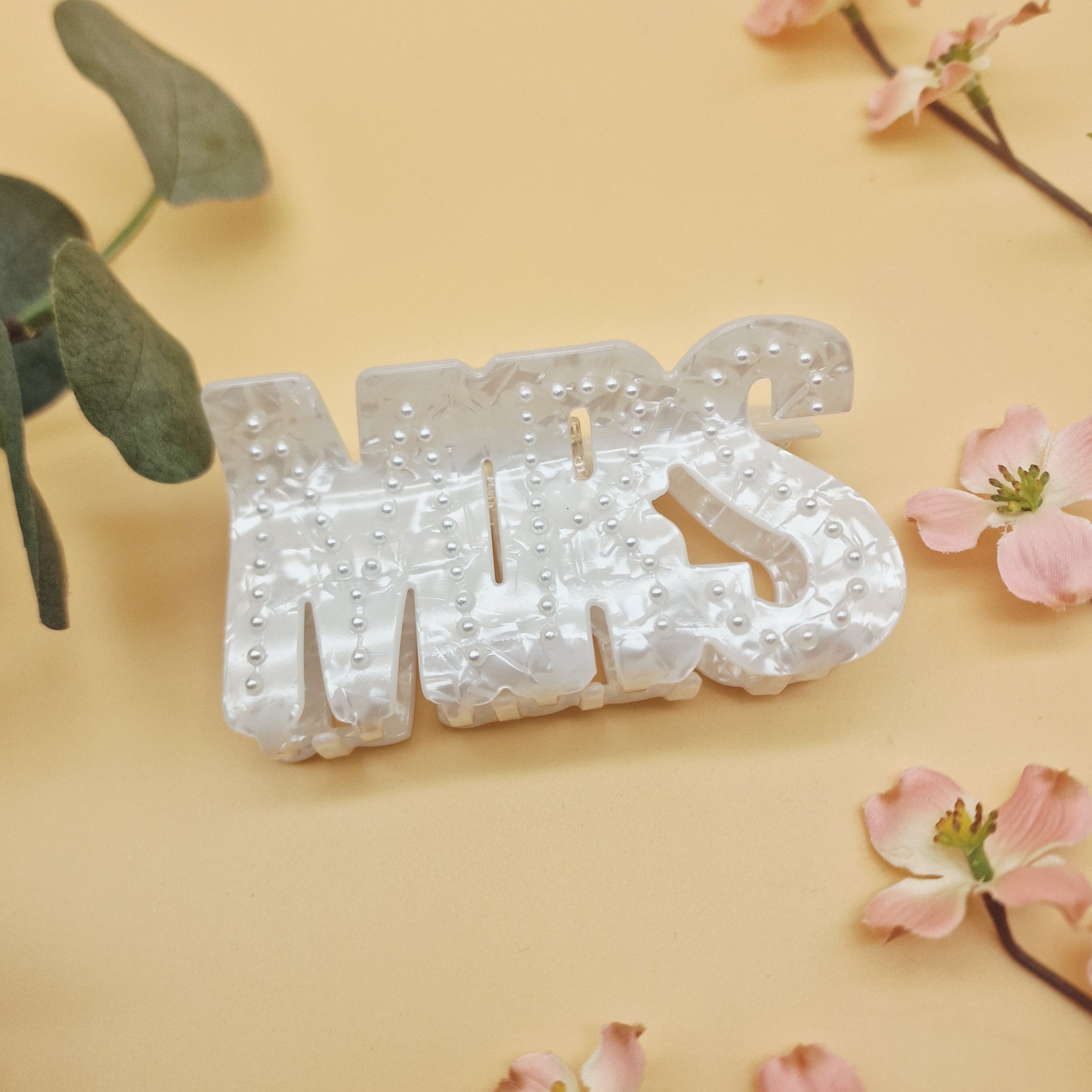 Mit der Haarklammer „Mrs“ setzt du ein klares Zeichen: glücklich verheiratet, elegant und voller Liebe.