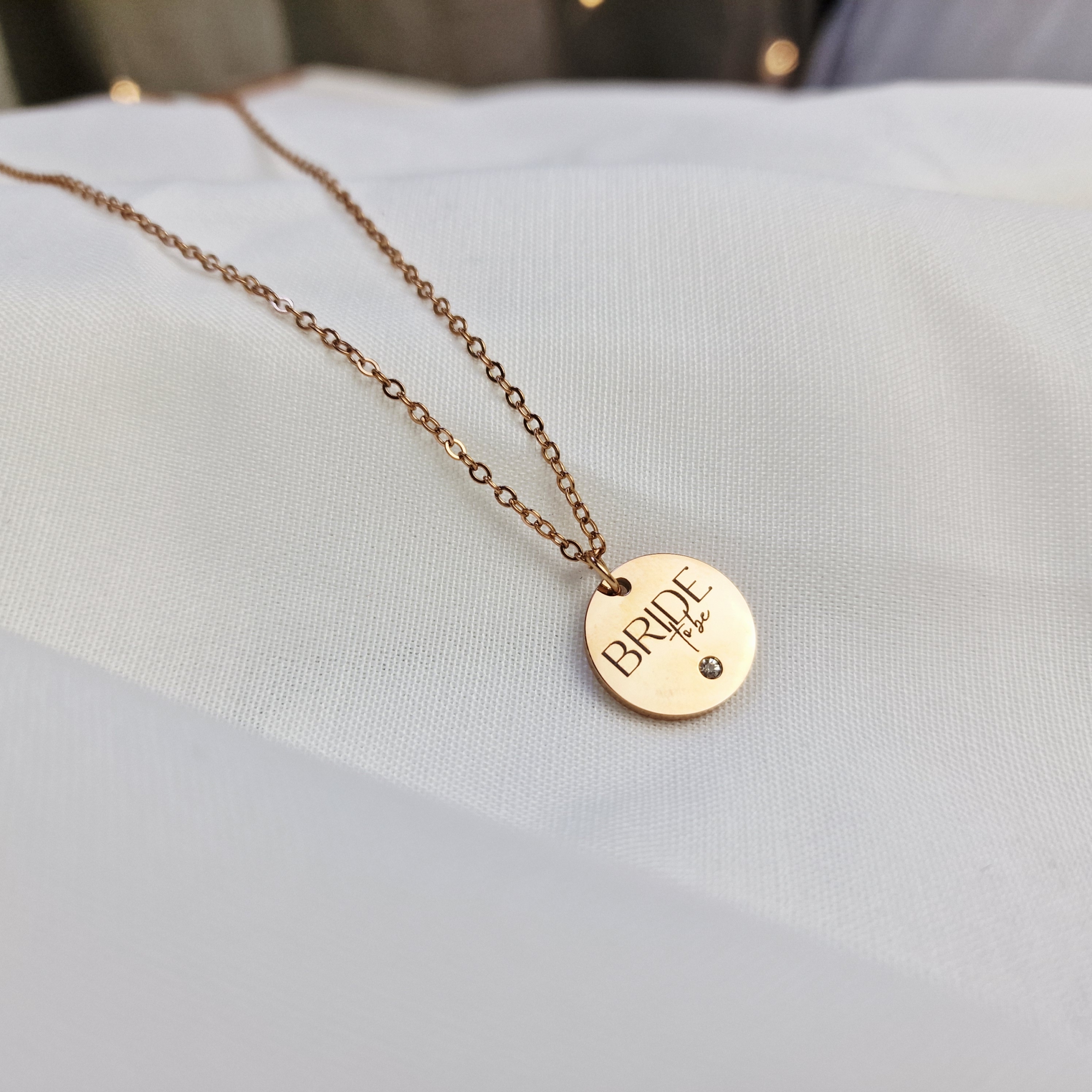 Eleganter runder Anhänger mit feinem „Bride to be“-Schriftzug