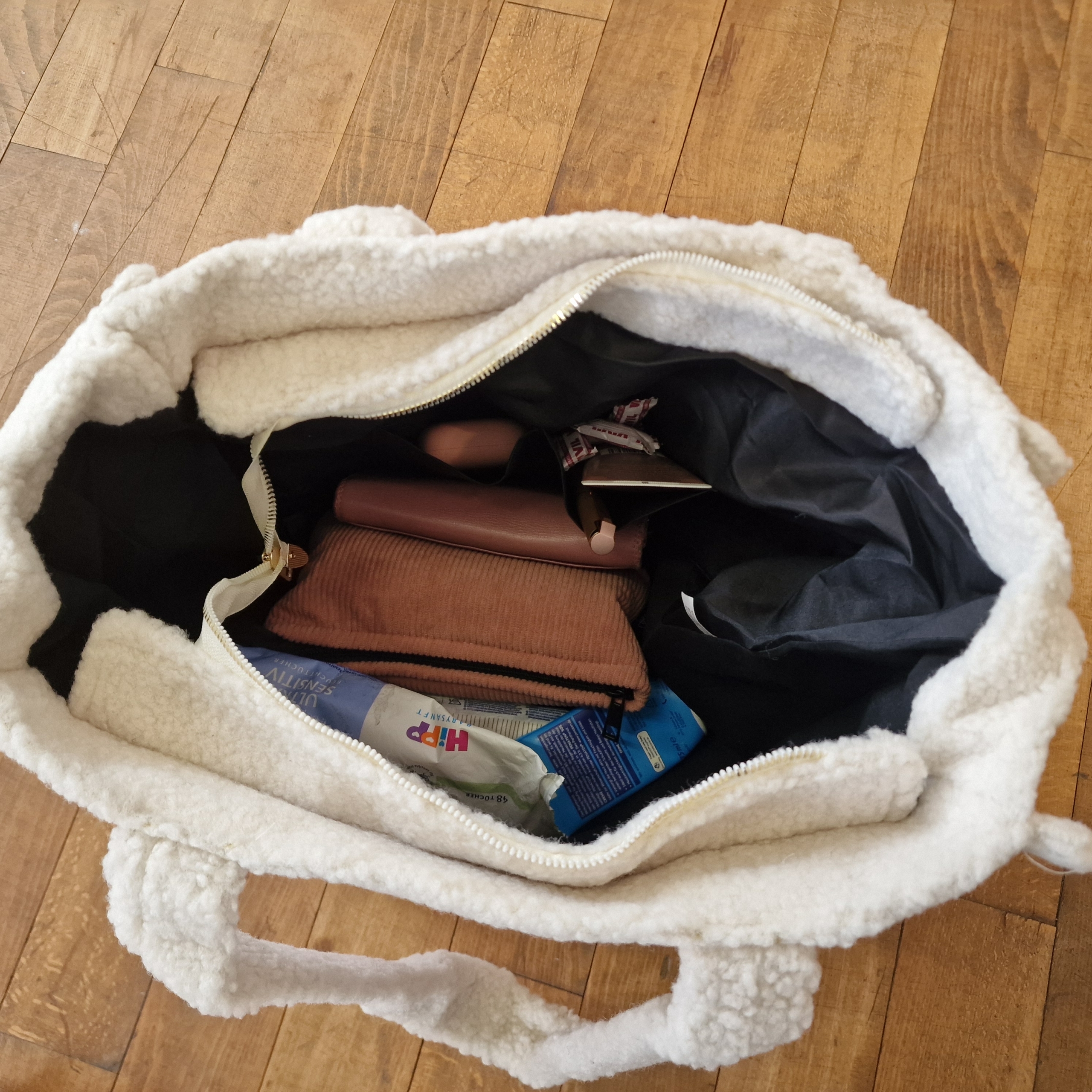 Manchmal sind es die kleinen Dinge, die unseren Mama-Alltag ein Stück leichter und gleichzeitig schöner machen. Diese Mommy Bag aus weichem Teddy Stoff gehört definitiv dazu. Sie ist nicht einfach nur eine Tasche – sie ist dein treuer Begleiter, dein mobiles Chaos-Management und ein liebevoller Reminder daran, wie besonders deine Rolle als Mama ist.